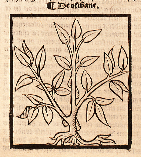 In the late 15th century, the first printed herbals such as Gart der Gesundheit and ortus Sanitatis by Jean de Cuba or Grant Herbier en françoys reproduced and established the schematic representations of the tree popularized by the manuscripts. They feature Boswellia sacra reduced to a straight trunk, a handful of rigid, symmetrical branches, large falcate and lanceolate leaves with a few large tears rolling down the central trunk.23In terms of shape and proportions, this representation seems to be based directly on the folio 188r illustration in the copy of Livre des simples médecines at the Wellcome Collection (ms. 626), illustrated circa 1470. These incunabula24Books printed in Europe before the 16th century, seen as alternatives to medieval manuscripts. favor simple images as mnemonics, in line with the iconographic tradition of the late Middles Ages:25The same applies to certain medieval Arabic herbals where the image is used as an anchor point for memory. Nevertheless, within Islamic iconographic traditions, this mnemonic aspect is not the only justification for using images; they also serve didactic purposes (implying a degree of functional realism) as well as playing an aesthetic role. The goal is not to faithfully reproduce a plant’s appearance but rather to highlight a characteristic detail (here, resin secretion) to help with its identification.26This oversimplification naturally raises difficulties when it comes to identifying the tree using images alone. The fact is that several resin-producing trees can be visually confused with each other when only their shared characteristic of gum resin is depicted rather than their actual appearance.